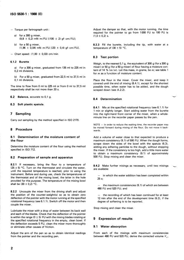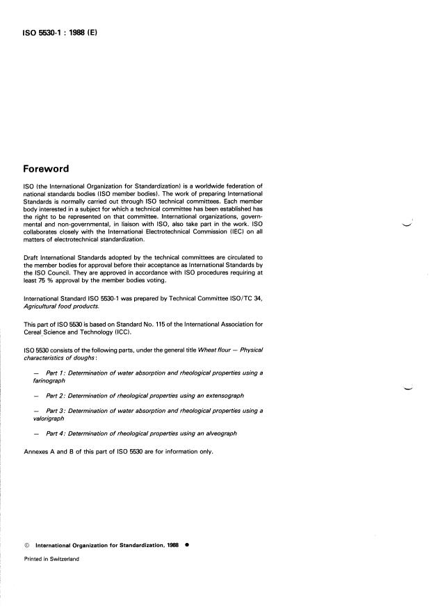 ISO 5530-1:1988 - Wheat flour — Physical characteristics of doughs — Part 1: Determination of water absorption and rheological properties using a farinograph Released:12/29/1988