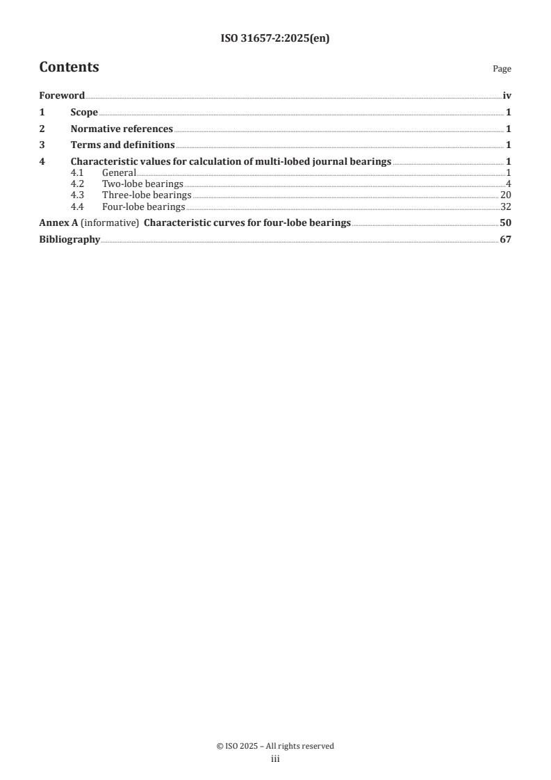 Keywords: ISO 31657-2:2025, multilobed journal bearings, hydrodynamic plain journal bearings, characteristic values, Sommerfeld number, bearing calculation, two‑lobe bearings, three‑lobe bearings, four‑lobe bearings, bearing stiffness and damping.