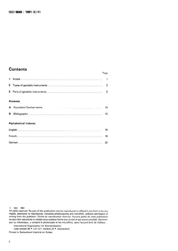 ISO 9849:1991 is a standard published by the International Organization for Standardization (ISO). Its full title is "Optics and optical instruments — Geodetic instruments — Vocabulary". This standard covers: Optics and optical instruments — Geodetic instruments — Vocabulary