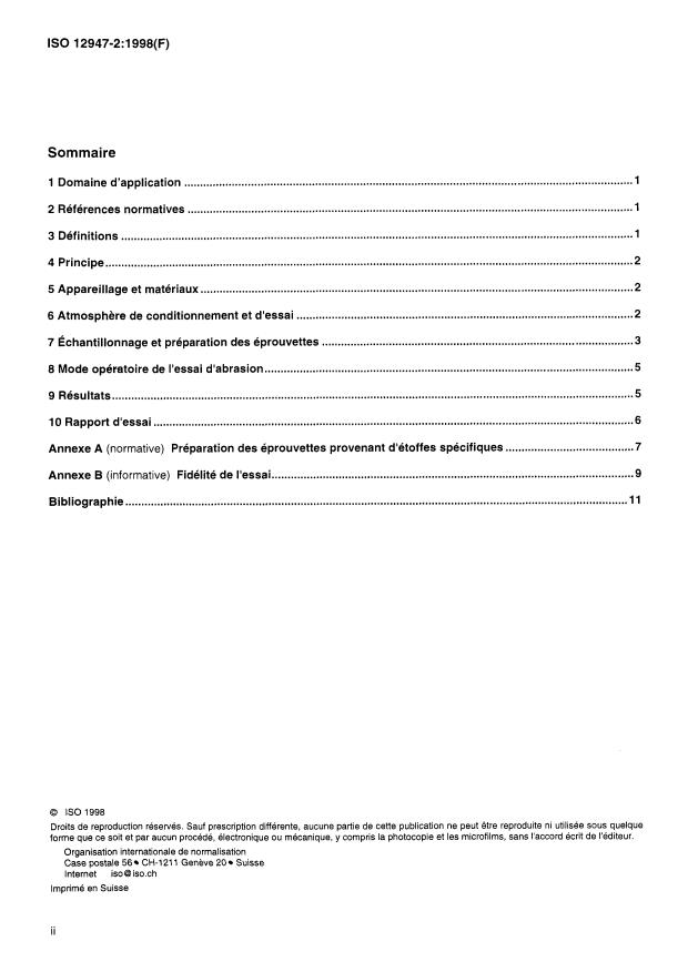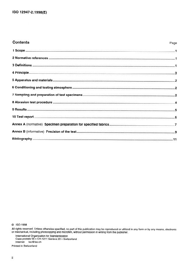 International Standard IS0 12947-2 was prepared by Technical Committee ISOTTC 38, Textiles.
