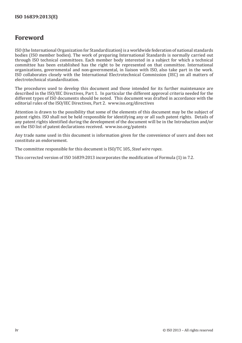 ISO 16839:2013 specifies a method for determining, by test and calculation, the resistance against lateral deformation of steel wire ropes without axial load. It provides a system of testing in order to qualify wire ropes.