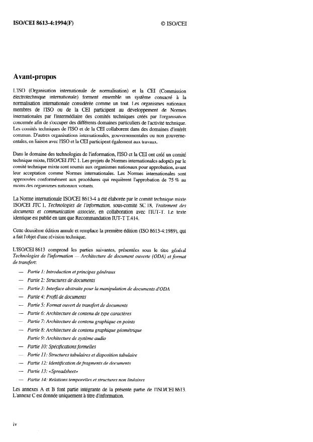 ISO/IEC 8613-4:1994 - Technologies de l'information -- Architecture de document ouverte (ODA) et format de transfert: Profil de documents