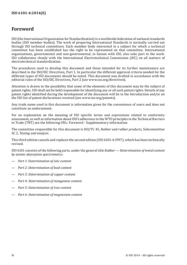 ISO 6101-4:2014 - Caoutchouc -- Détermination de la teneur en métal par spectrométrie d'absorption atomique