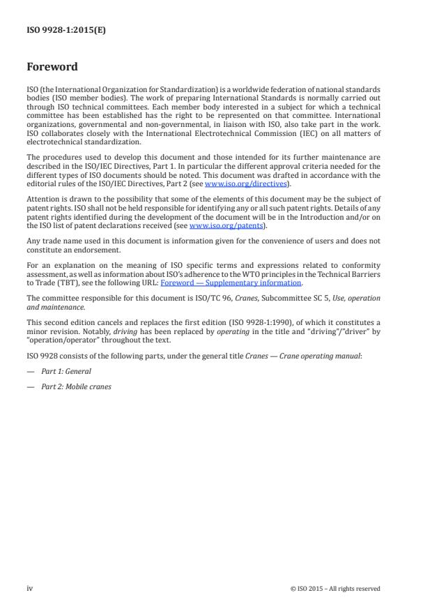 ISO 9928-1:2015 - Cranes -- Crane operating manual