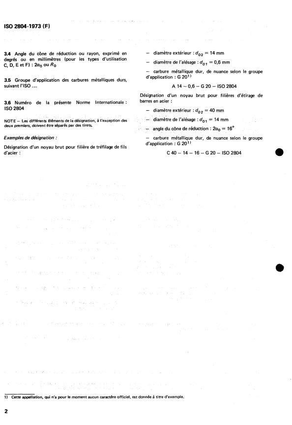 3) Pour les noyaux bruts sans alésage (type I des utilisations A et B) indiquer 00; la dimension de dol doit être indiquée en millimètres, avec