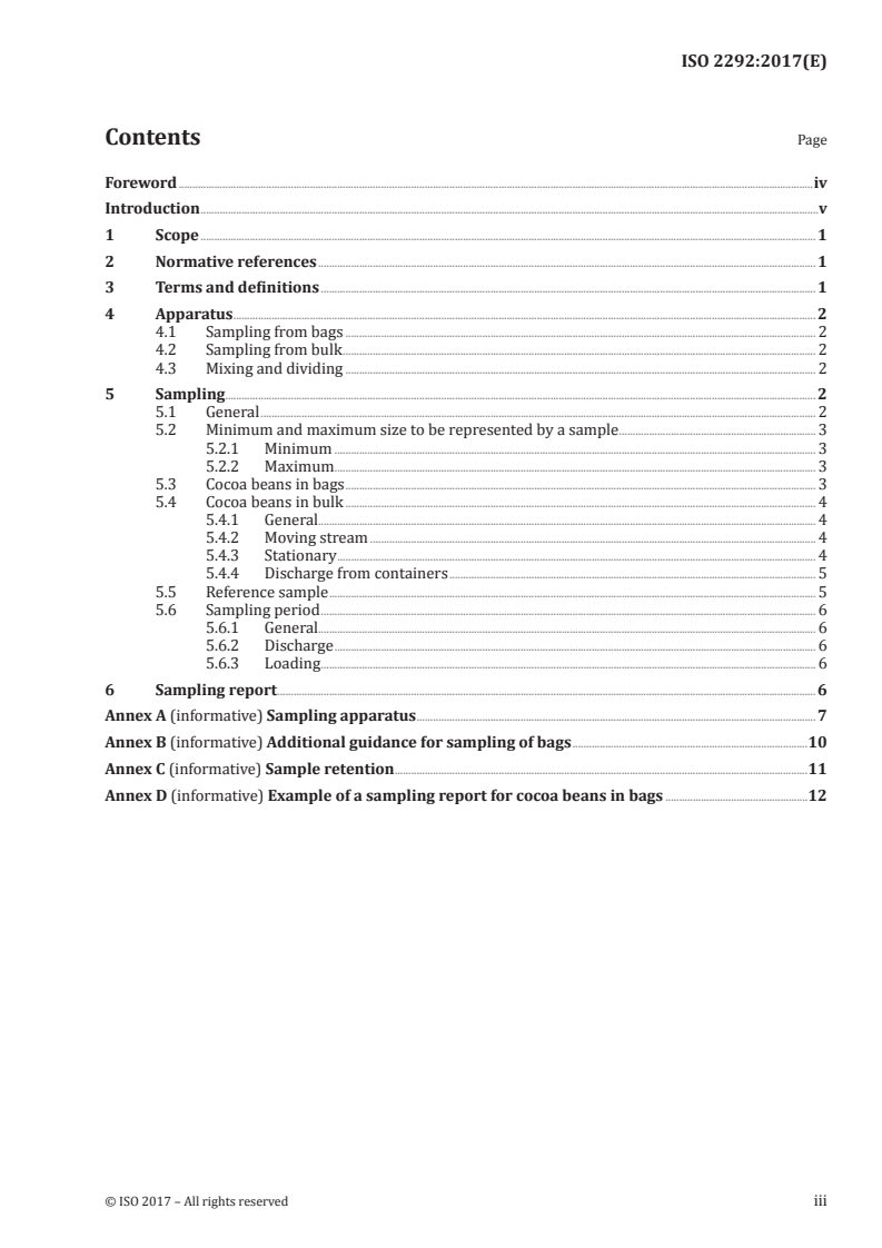 Keywords: ISO 2292:2017, cocoa bean sampling, sampling cocoa beans, composite sample, reference sample, sampling from bags and bulk.