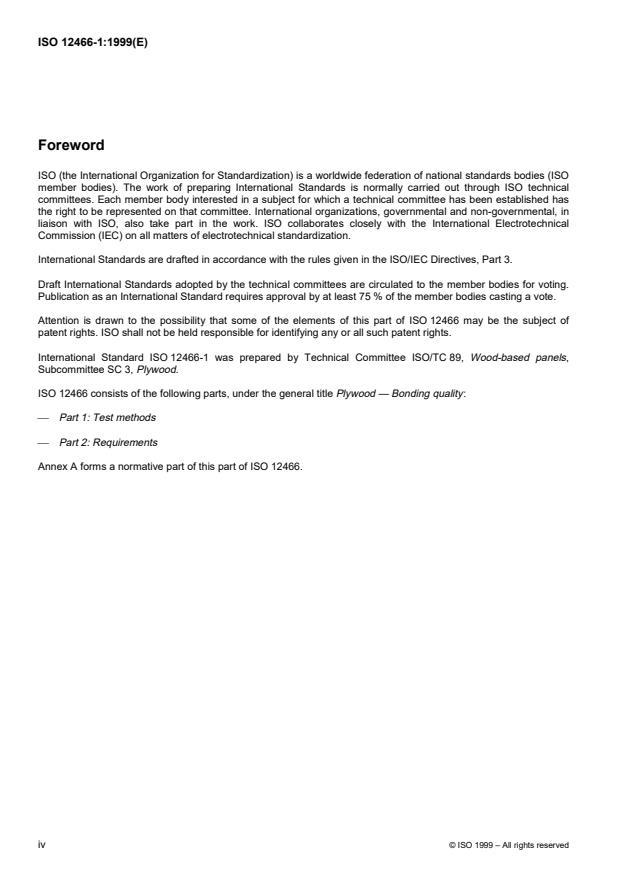 ISO 12466 consists of the following parts, under the general title Plywood — Bonding quality: