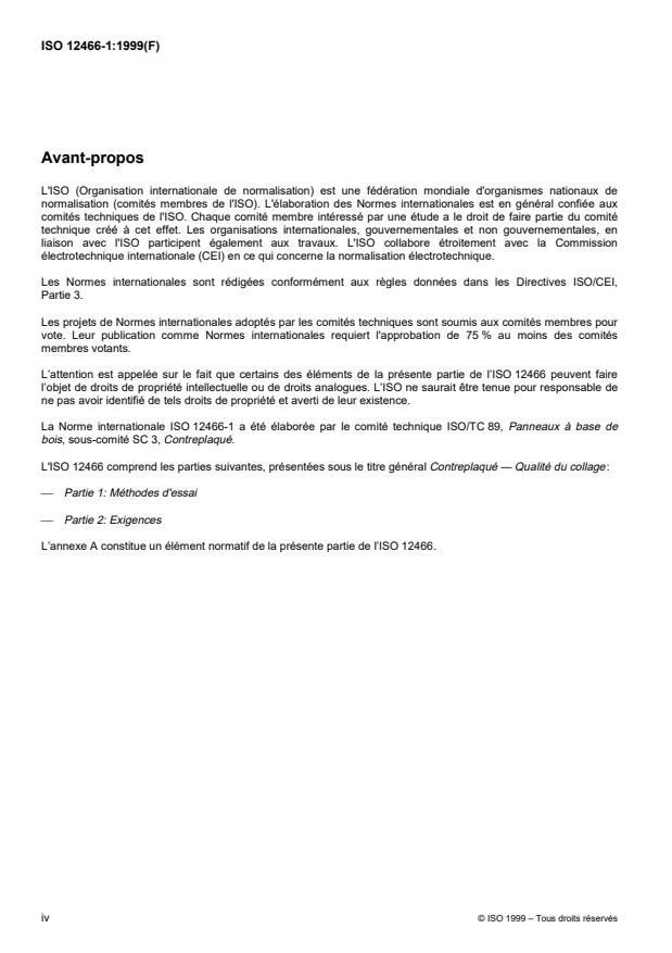 L'ISO 12466 comprend les parties suivantes, présentées sous le titre général Contreplaqué — Qualité du collage: