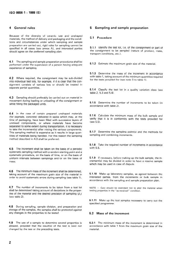 Keywords: ISO 8656-1, refractory products sampling, sampling scheme, raw materials, unshaped refractory, increment mass, coefficient of variation, sampling precision.