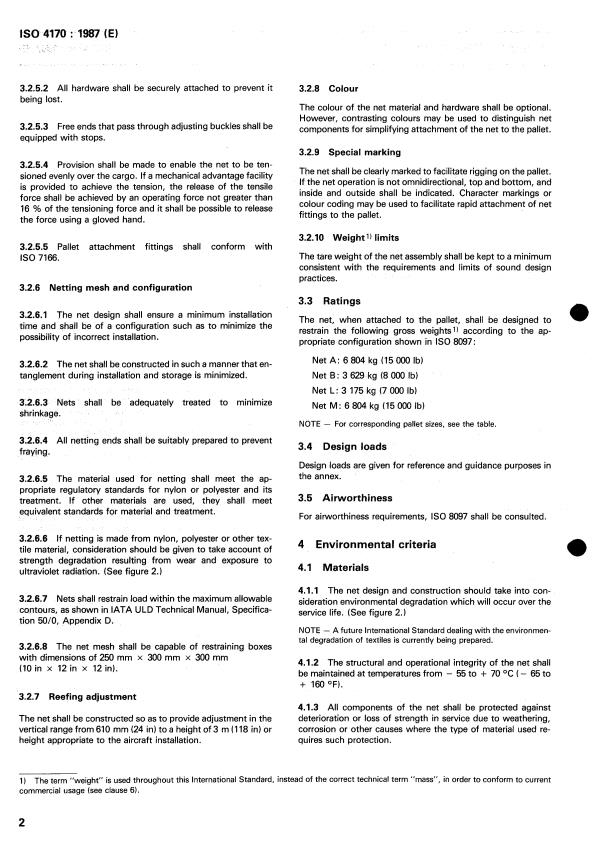 ISO 4170:1987 is a standard published by the International Organization for Standardization (ISO). Its full title is "Air cargo equipment — Interline pallet nets". This standard covers: Air cargo equipment — Interline pallet nets