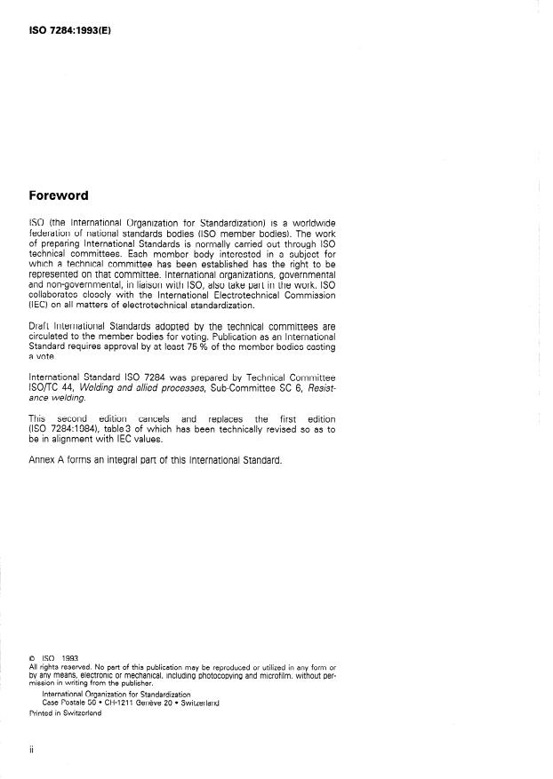 ISO 7284:1993 is a standard published by the International Organization for Standardization (ISO). Its full title is "Resistance welding equipment — Particular specifications applicable to transformers with two separate secondary windings for multi-spot welding, as used in the automobile industry". This standard covers: Its purpose is to give specific details or to complement ISO 5826, which deals with general specifications applicable to all transformers, relating to particular transformers within their field of application.