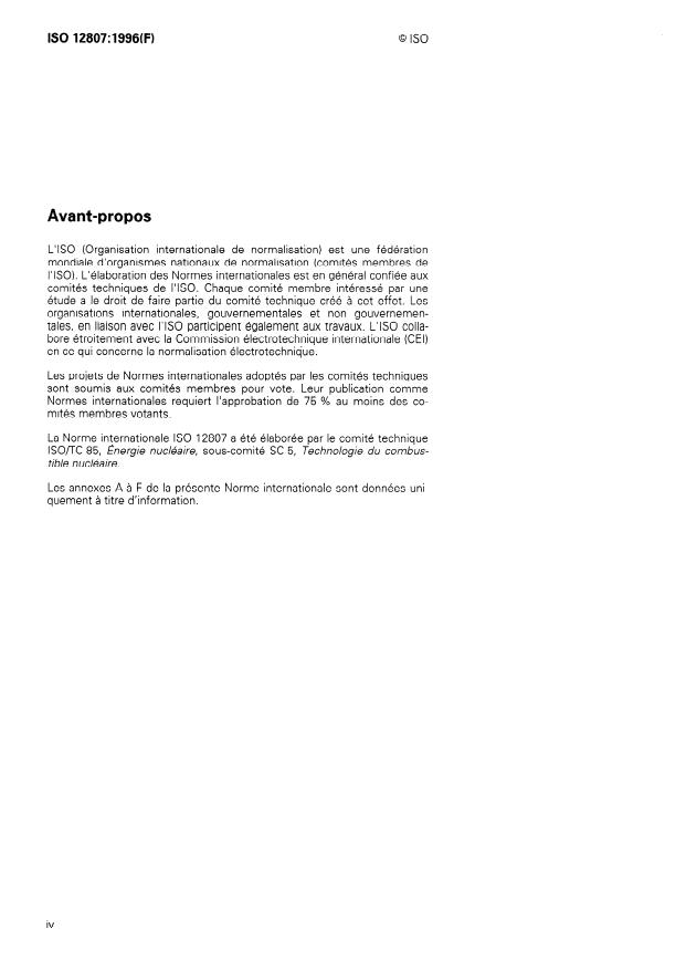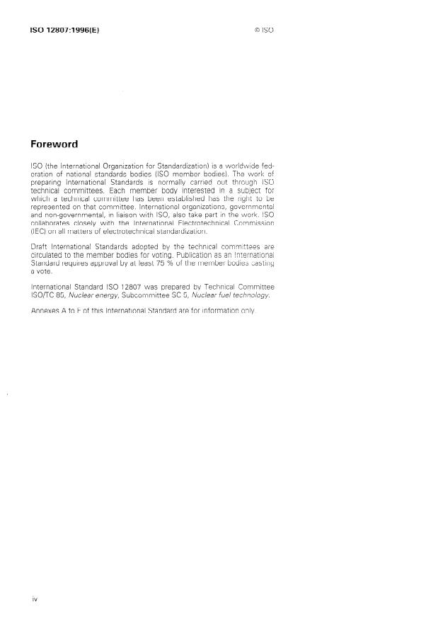 ISO 12807:1996 is a standard published by the International Organization for Standardization (ISO). Its full title is "Safe transport of radioactive materials — Leakage testing on packages". This standard covers: Safe transport of radioactive materials — Leakage testing on packages
