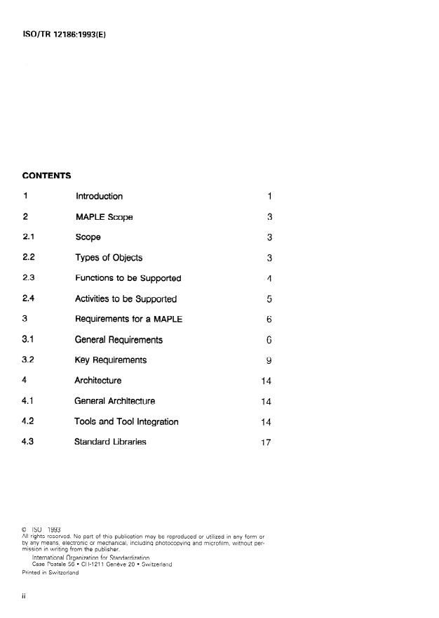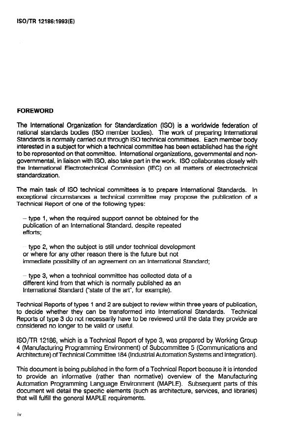ISO/TR 12186:1993 is a technical report published by the International Organization for Standardization (ISO). Its full title is "Manufacturing automation programming language environment overview (MAPLE)". This standard covers: Manufacturing automation programming language environment overview (MAPLE)