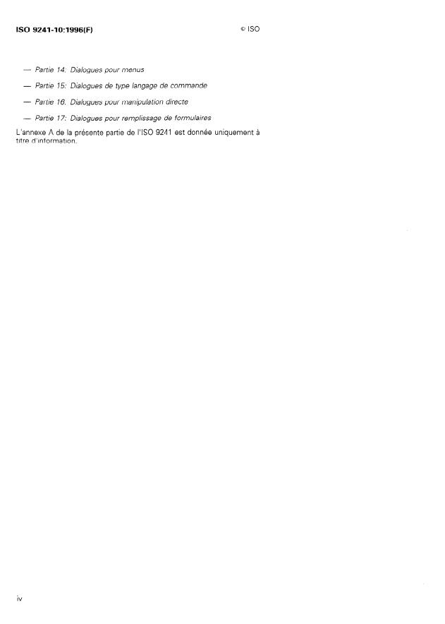 ISO 9241-10:1996 - Exigences ergonomiques pour travail de bureau avec terminaux a écrans de visualisation (TEV)