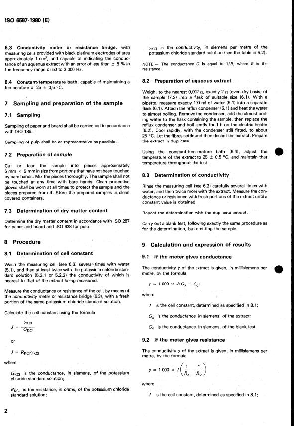 ISO 6587:1980 - Paper, board and pulps — Determination of conductivity of aqueous extracts Released:12/1/1980