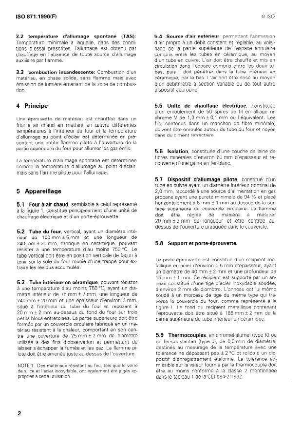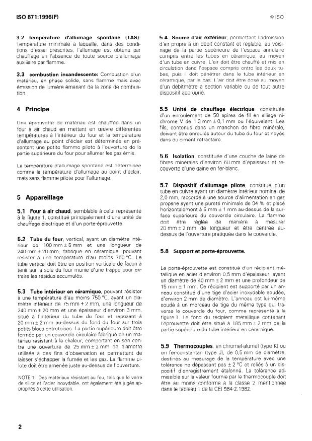 ISO 871:1996 - Plastiques -- Détermination de la température d'allumage au moyen d'un four a air chaud