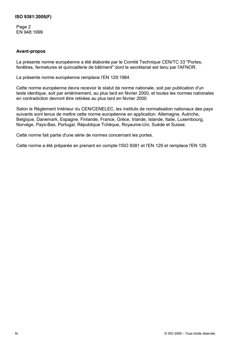 La présente norme européenne a été élaborée par le Comité Technique CEN/TC 33 "Portes,