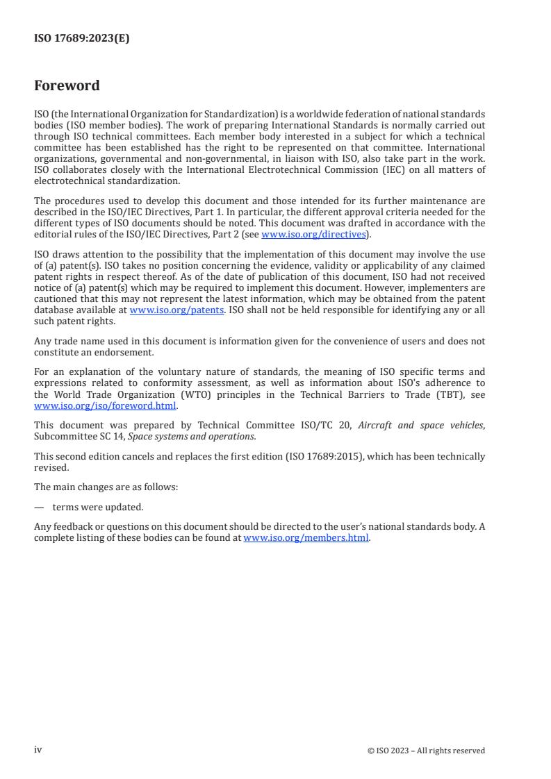 ISO 17689:2023 is classified under the following ICS (International Classification for Standards) categories: 49.140 - Space systems and operations. The ICS classification helps identify the subject area and facilitates finding related standards.