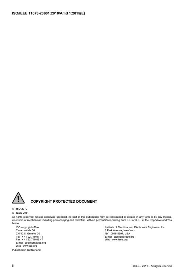 Amendment 1 to ISO/IEEE 11073-20601 was prepared by the 11073 Committee of the Engineering in