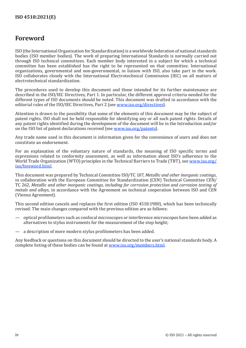 Keywords: ISO 4518:2021, metallic coatings, coating thickness measurement, profilometric method, profilometer, stylus, optical profilometer, confocal microscope, white‑light interference.