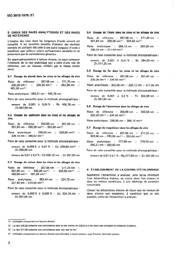 l’lSO/R 752, pour les éléments et aux teneurs indiqués dans 4.2 Pour l’établissement de la courbe d’étalonnage, des