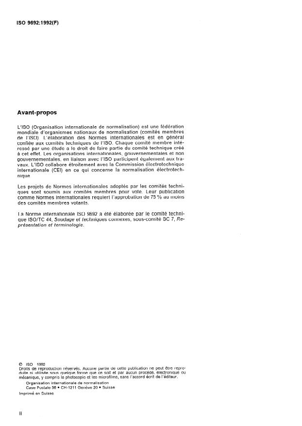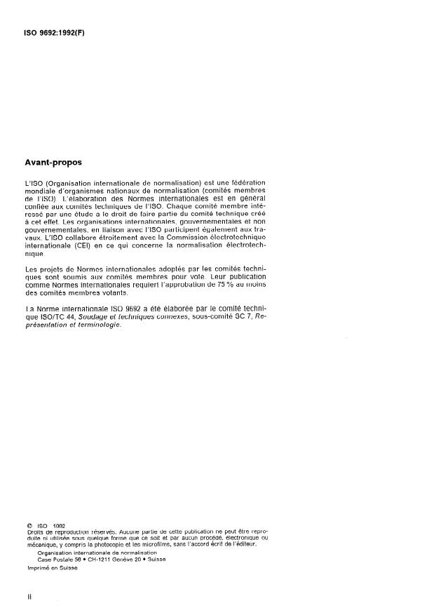 La Norme internationale ISO 9692 a été élaborée par le comité techni-