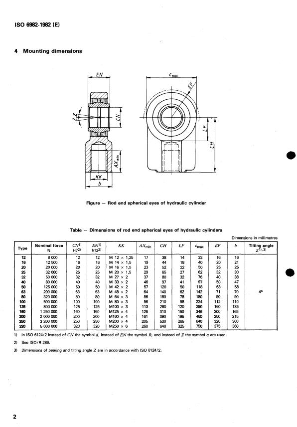 ISO 6982:1982 - Hydraulic fluid power — Cylinders — Rod end spherical eyes — Mounting dimensions Released:12/1/1982