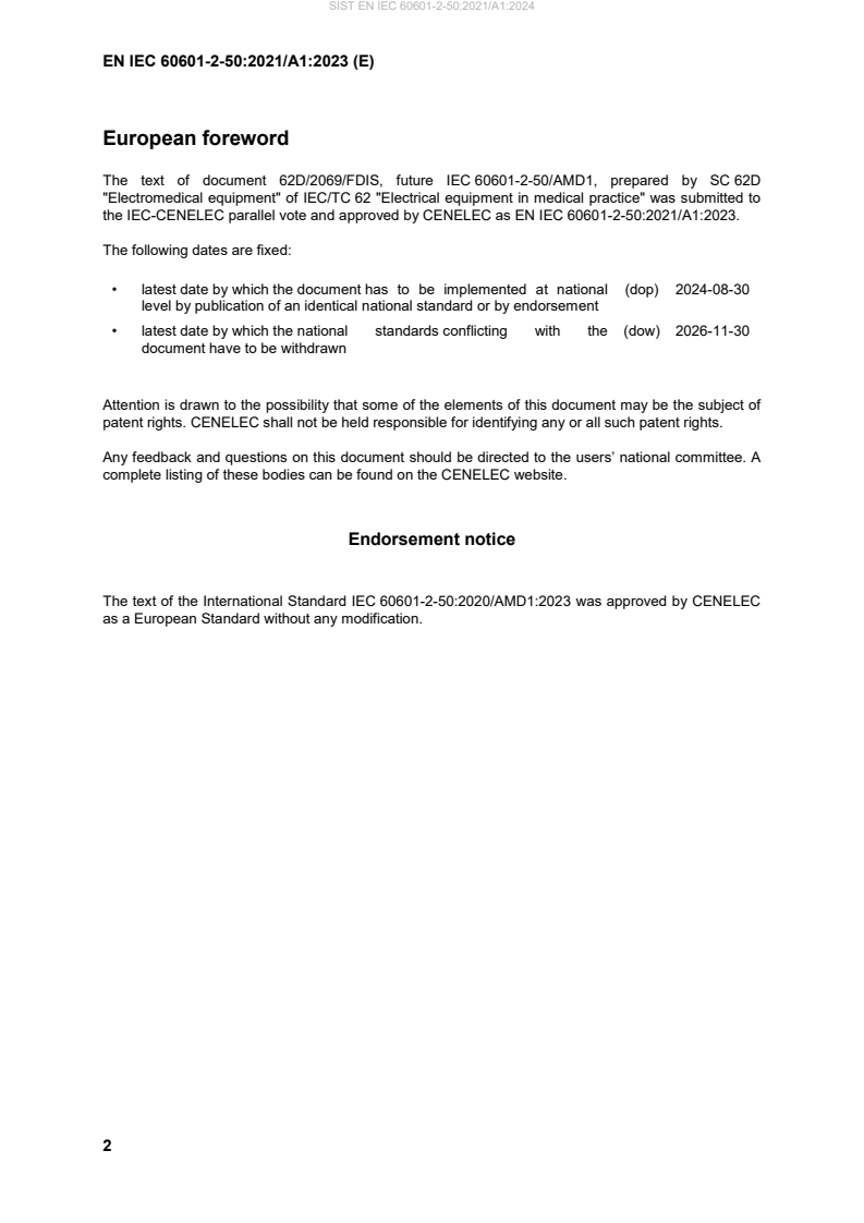 the IEC-CENELEC parallel vote and approved by CENELEC as EN IEC 60601-2-50:2021/A1:2023.