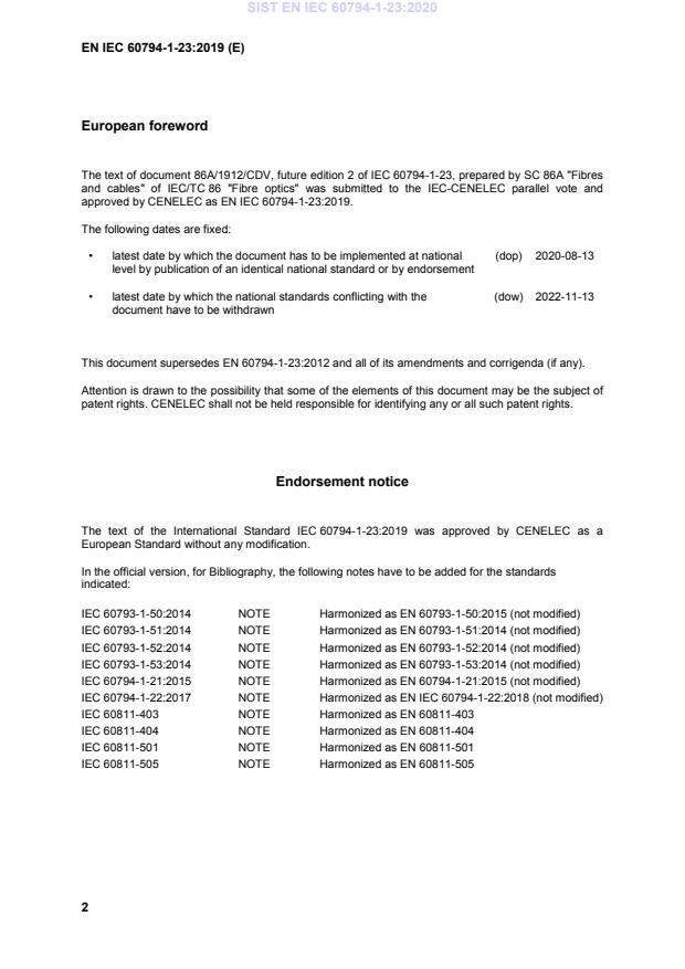 SIST EN IEC 60794-1-23:2020 has the following relationships with other standards: It is inter standard links to SIST EN 60794-1-23:2013, SIST EN IEC 60794-1-307:2025, SIST EN IEC 60794-1-311:2024, SIST EN IEC 60794-1-309:2023, SIST EN IEC 60794-1-301:2023, SIST EN IEC 60794-1-305:2023, SIST EN IEC 60794-1-312:2024, SIST EN IEC 60794-1-303:2023, SIST EN IEC 60794-1-308:2023, SIST EN IEC 60794-1-310:2022, SIST EN IEC 60794-1-306:2023, SIST EN 60794-1-23:2013. Understanding these relationships helps ensure you are using the most current and applicable version of the standard.