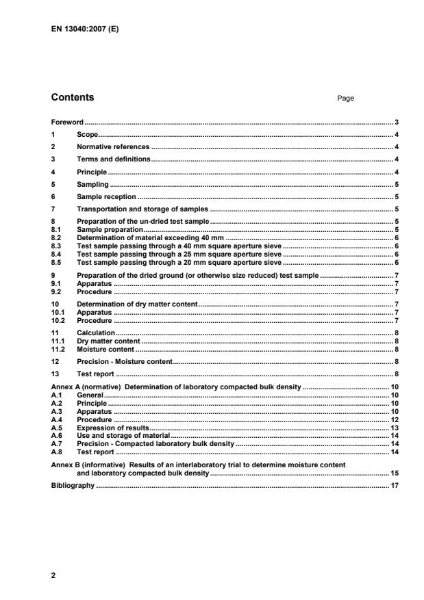 Keywords: EN 13040:2007, soil improvers, growing media, sample preparation, dry matter content, moisture content, laboratory compacted bulk density, CEN.