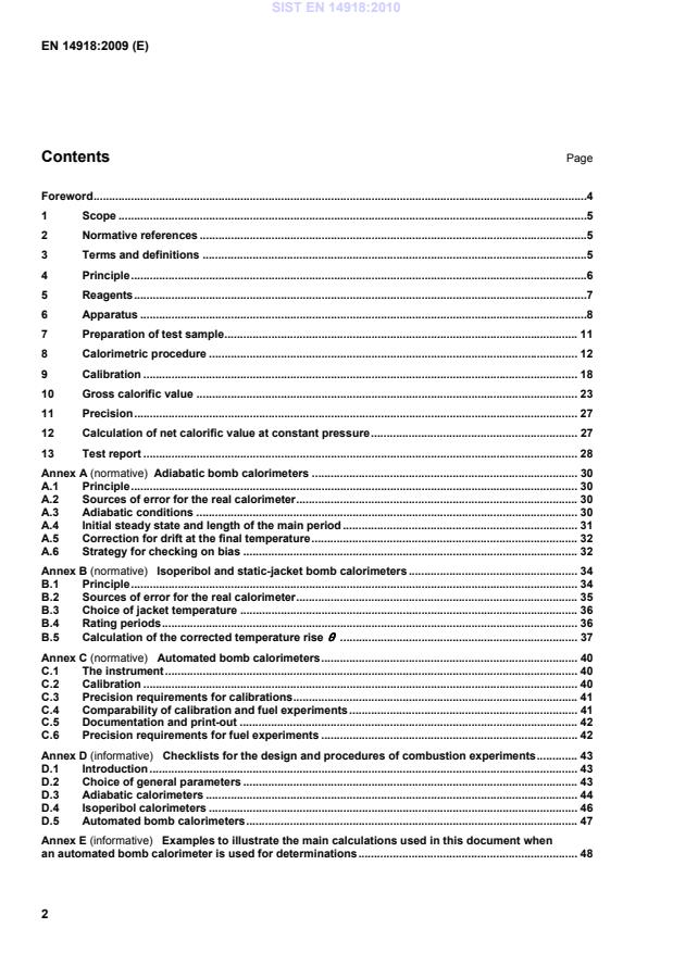 Checklists for the design and procedures of combustion experiments . 43D.1Introduction . 43D.2Choice of general parameters . 43D.3Adiabatic calorimeters . 44D.4Isoperibol calorimeters . 46D.5Automated bomb calorimeters . 47Annex E (informative)