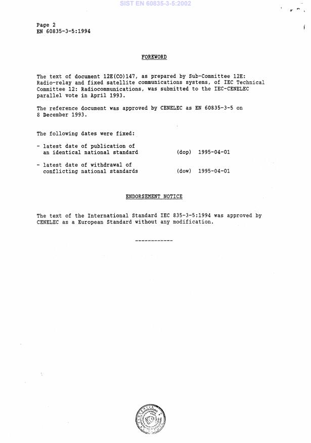 SIST EN 60835-3-5:2002 is classified under the following ICS (International Classification for Standards) categories: 33.060.30 - Radio relay and fixed satellite communications systems. The ICS classification helps identify the subject area and facilitates finding related standards.