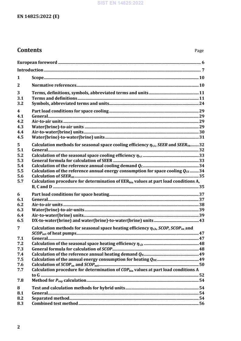 Ta evropski standard določa temperature in pogoje delne obremenitve ter računske metode za določanje sezonske energetske učinkovitosti SEER in SEERon, sezonsko energetsko učinkovitost hlajenja prostorov ηs,c, sezonski koeficient učinkovitosti SCOP, SCOPon in SCOPnet ter sezonsko energetsko učinkovitost ogrevanja prostorov ηs,h in razmerje sezonske energetske učinkovitosti SEPR.