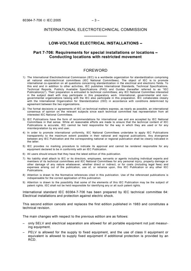 International standard IEC 60364-7-706 has been prepared by IEC technical committee 64: