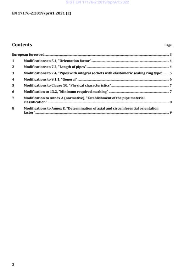 SIST EN 17176-2:2019/oprA1:2022 is a draft published by the Slovenian Institute for Standardization (SIST). Its full title is "Plastics piping systems for water supply and for buried and above ground drainage, sewerage and irrigation under pressure - Oriented unplasticized poly(vinyl chloride) (PVC-O) - Part 2: Pipes". This standard covers: This part of FprEN 17176 specifies the characteristics of solid-wall pipes made of oriented unplasticized poly(vinyl chloride) (PVC-O) for piping systems intended for water supply and for buried drainage, sewerage, treated waste water and irrigation under pressure or above-ground where protected from direct sunlight. It also specifies the test parameters for the test methods referred to in this document. In conjunction with FprEN 17176-1 and FprEN 17176-5, it is applicable to oriented PVC-O pipes with or without integral socket intended to be used for the following: a) water mains and services lines; b) conveyance of water for both outside and inside buildings; c) drainage, sewerage and treated waste water under pressure; d) irrigation under pressure. It is applicable to piping systems intended for the supply of water with a maximum allowable operating pressure (PFA) up to and including 25 bar . The piping system according to this document is intended for the conveyance of cold water up to and including 45 °C and especially in those applications where special performance requirements are needed, such as impact loads and pressure fluctuations. For temperatures between 25 °C and 45 °C, Figure C.1 of this document applies. This part of FprEN 17176 specifies a range of pipe sizes and pressure classes and gives a requirement and recommendations concerning colours. NOTE It is the responsibility of the purchaser or specifier to make the appropriate selections from these aspects, taking into account their particular requirements and any relevant national regulations and installation practices or codes.