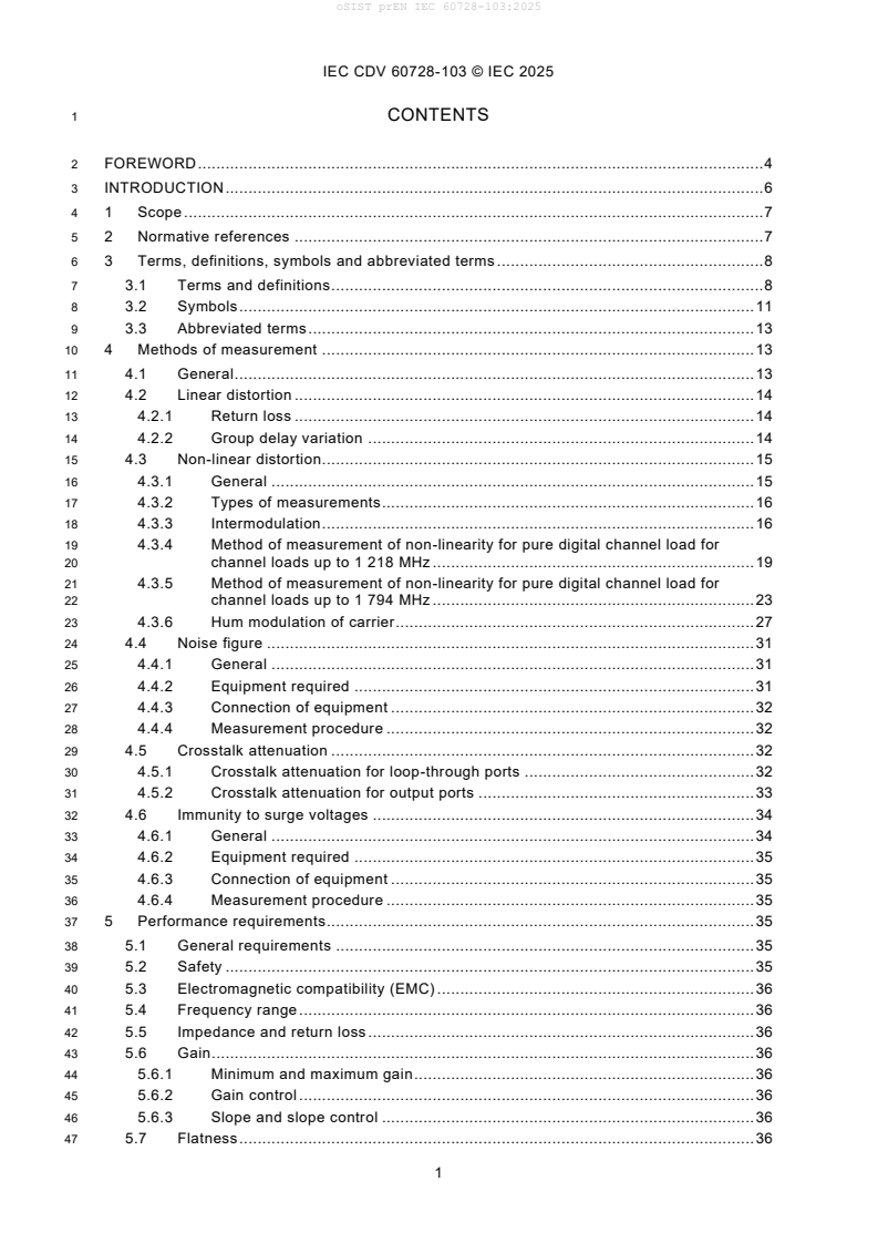 By following the guidance set out in oSIST prEN IEC 60728-103:2025, stakeholders can ensure that active wideband equipment efficiently supports modern high-quality digital signals in cable distribution systems, promoting robust, interference-free, and scalable cable networks for television, sound, and interactive digital services.