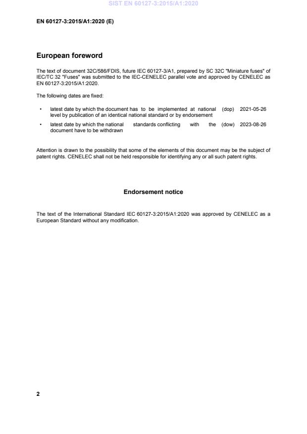 This amendment A1 modifies the European Standard EN 60127-3:2015; it was approved by CENELEC on 2020-08-26. CENELEC