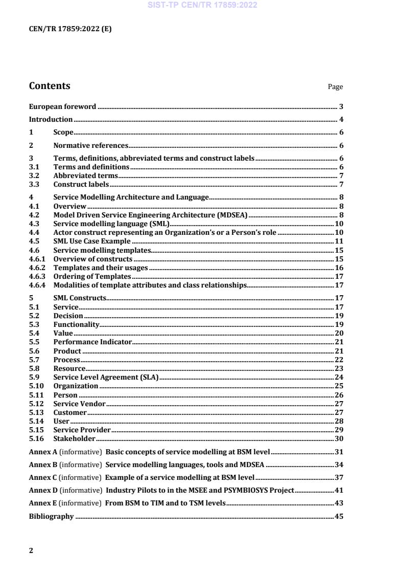 SIST-TP CEN/TR 17859:2022 is a technical report published by the Slovenian Institute for Standardization (SIST). Its full title is "Service Modelling Language". This standard covers: This document specifies constructs for modelling and specifying product-related service systems in general business terms, recognising the service environment and the product lifecycle. The constructs and their meta-model are consistent with the Model Driven Service Engineering Architecture (MDSEA). They are intended for use by business users to address their business concerns and decision-making, and by systems engineers and IT/researchers using a model-driven engineering approach in the design, development and deployment of service systems in Virtual Manufacturing Enterprises (VMEs), business ecosystems and other application areas.