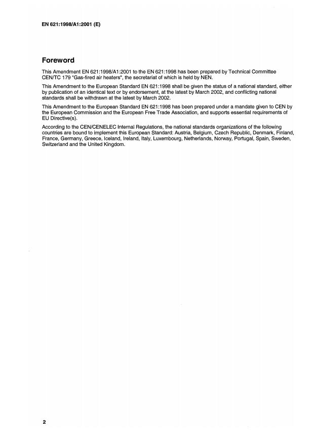 SIST EN 621:1999/A1:2002 is a amendment published by the Slovenian Institute for Standardization (SIST). Its full title is "Non-domestic gas-fired forced convection air heaters for space heating not exceeding a net heat input of 300 kW, without a fan to assist transportation of combustion air and/or combustion products". This standard covers: Migrated from Progress Sheet (TC Comment) (2000-07-10): A-deviation asked to CEN/TC 179 by Switzerland. Tc must confirmed.
