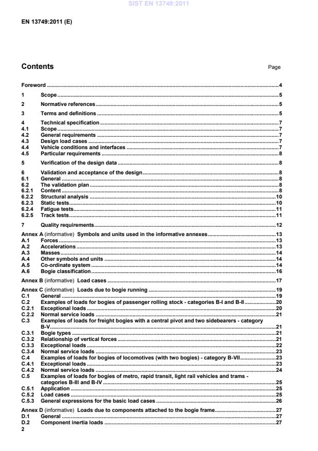 Loads due to components attached to the bogie frame . 27D.1General . 27D.2Component inertia loads . 27SIST EN 13749:2011
