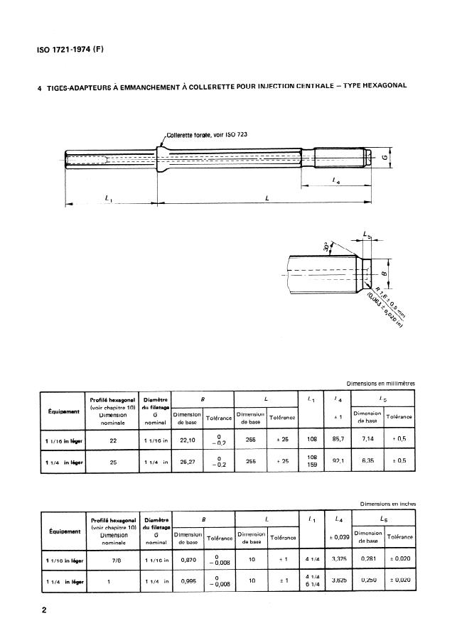 ISO 1721:1974 - Forage des roches -- Matériels pour forage percutant de longs trous -- Équipements a filetage a butée inverse 1 1/16 et 1 1/4 in (27 et 32 mm)