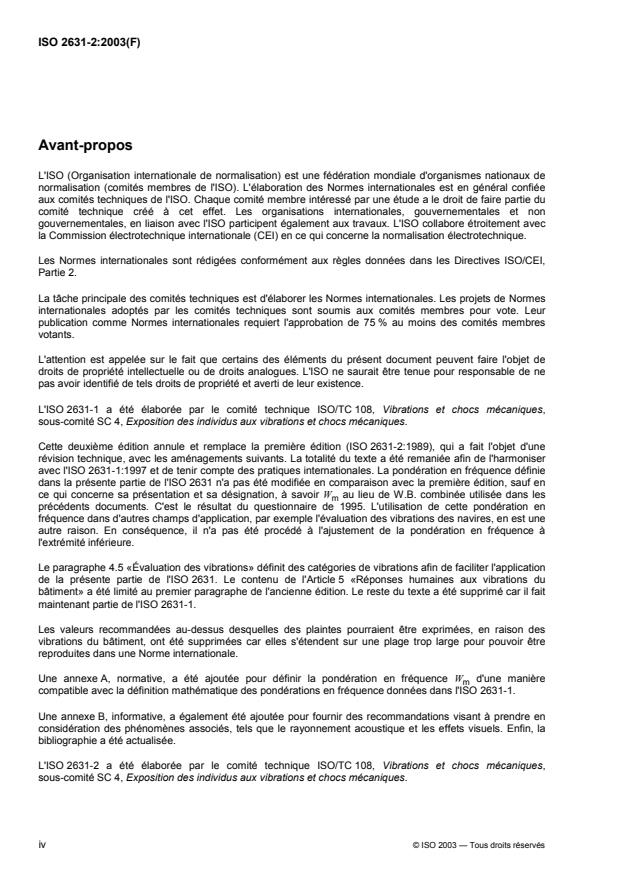 La définition mathématique de la pondération en fréquence, Wm, est donnée dans l'Annexe A. Des recommandations pour le recueil de données relatives à la réponse humaine aux vibrations du bâtiment sont données dans l'Annexe B.