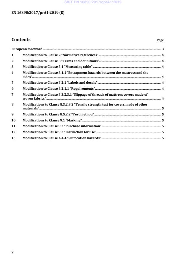 EN 16890:2017/prA1 (CEN) is the European standard for children’s furniture - mattresses for cots and cribs. It specifies safety requirements and test methods for mattresses, mattress bases and mattress toppers used in cots, travel cots, cribs and suspended baby beds for domestic and non‑domestic use. Excluded are mattresses for carry cots and pram bodies, inflatable and water mattresses, and mattresses for medical purposes. Amendment prA1 (drafted October 2019) updates normative references, definitions and multiple test and marking requirements.