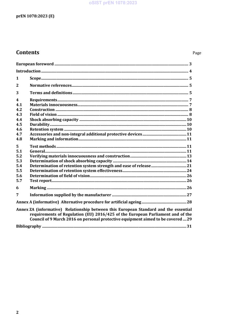 The scope of kSIST FprEN 1078:2025 covers helmet construction, field of vision, shock absorbing capacity, retention system properties including chin straps, and marking requirements. It aims to ensure helmets deliver effective protection by specifying performance thresholds and test methodologies grounded in risk analysis and accident data. However, the standard excludes helmets for young children when there is a strangulation risk.