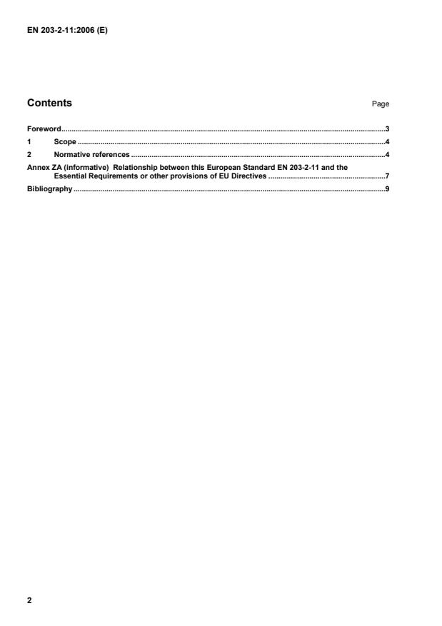 Relationship between this European Standard EN 203-2-11 and the Essential Requirements or other provisions of EU Directives.7 Bibliography.9