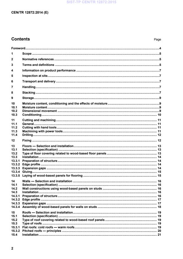 SIST-TP CEN/TR 12872:2015 is a technical report published by the Slovenian Institute for Standardization (SIST). Its full title is "Wood-based panels - Guidance on the use of load-bearing boards in floors, walls and roofs". This standard covers: This Technical Report gives guidance on the use of wood-based panels in structural applications as structural floor and roof decking on joists or structural wall sheathing on studs in accordance with EN 12871. It provides information on: — inspection at site; — transport and delivery; — handling; — stacking; — storage; — moisture content, conditioning and the effects of moisture; — cutting and machining; — selection; — installation.
