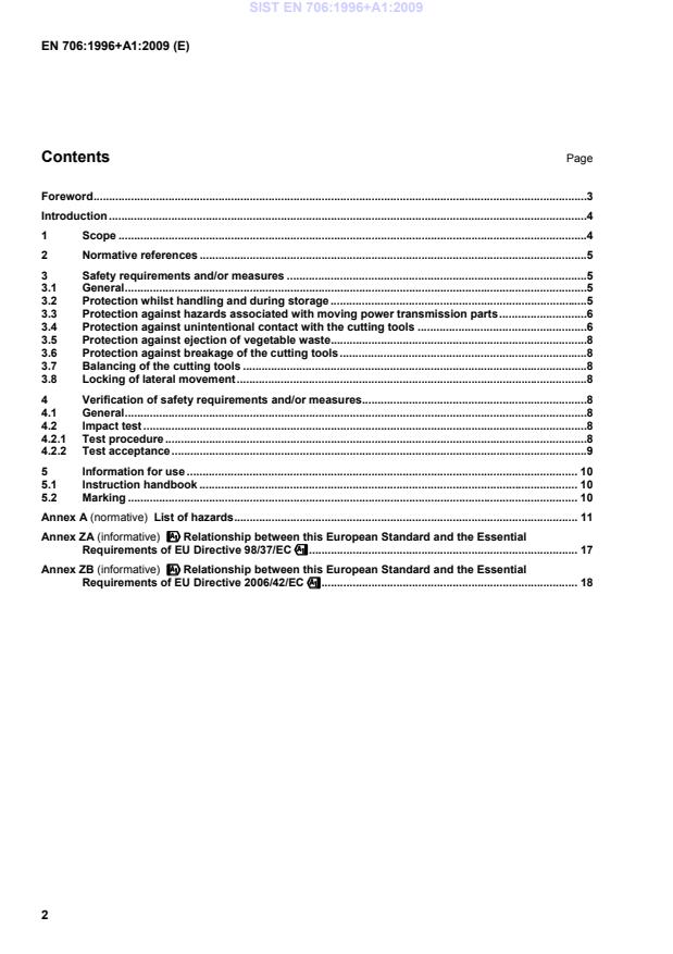 !!!!Relationship between this European Standard and the Essential Requirements of EU Directive 2006/42/EC"""" . 18 SIST EN 706:1996+A1:2009