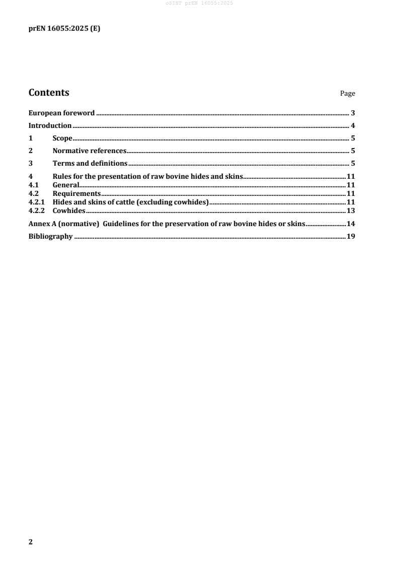 By adopting oSIST prEN 16055:2025:2025, companies in the leather industry can maximize efficiency, minimize disputes, and maintain superior raw material quality-critical to producing premium leather goods globally. Keywords: raw bovine hides, leather manufacturing, hide preservation, hide defects, leather supply chain, hide grading, calfskin, salted hides, leather standardization.