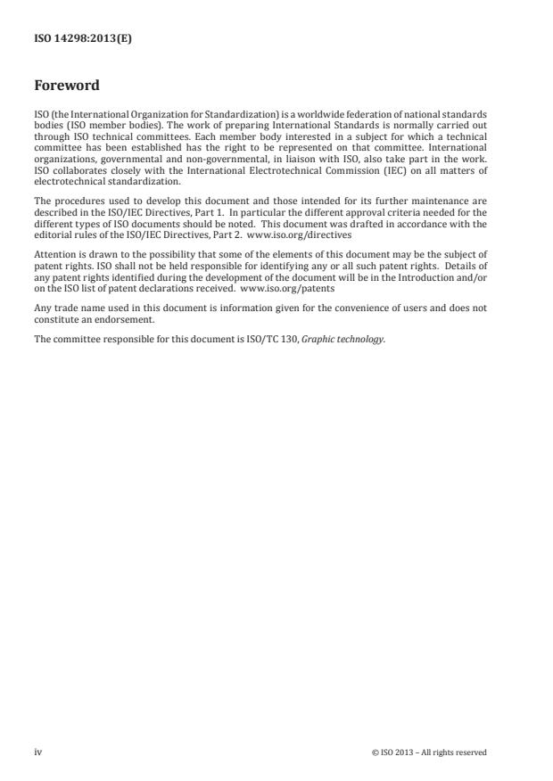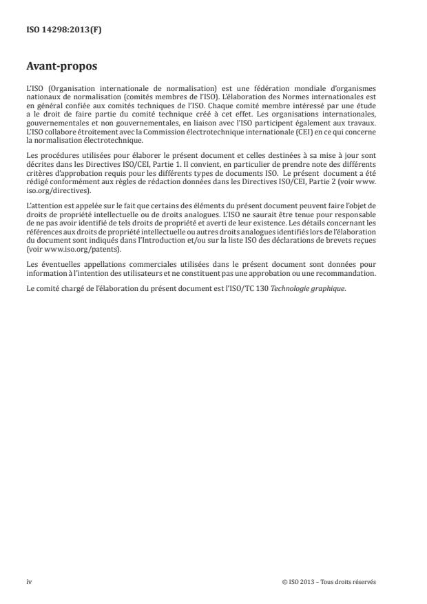 L'ISO 14298:2013 spécifie un ensemble minimal d'exigences propres au système de management des impressions de sécurité. Les organismes veillent à ce que les exigences de sécurité de leur clientèle soient satisfaites, à condition qu'elles n'entrent pas en conflit avec les exigences de l'ISO 14298:2013.