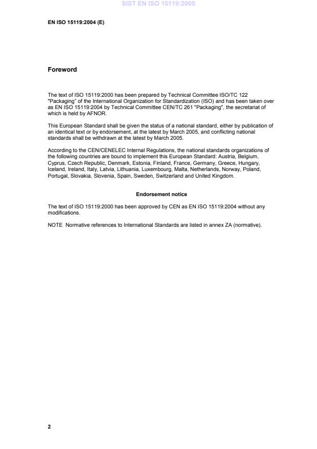 as EN ISO 15119:2004 by Technical Committee CEN/TC 261 "Packaging", the secretariat of